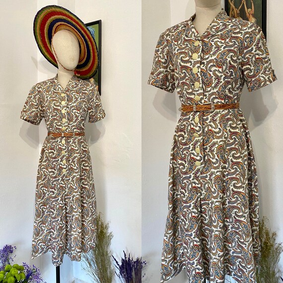 1940s Cotton Day Dress 40s Dress 40s Swing Dress Land Etsy New Zealand